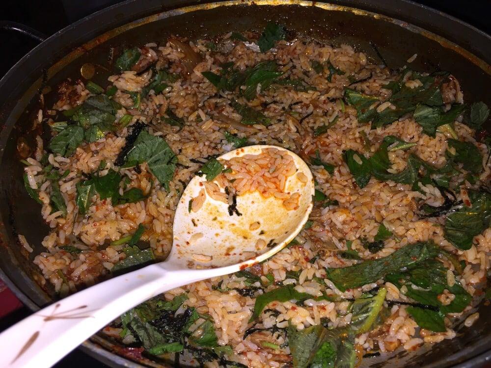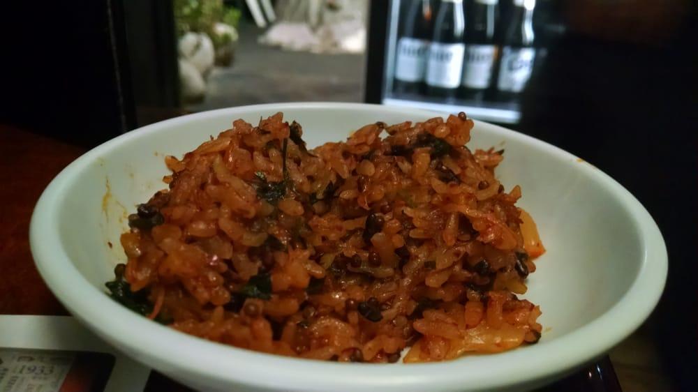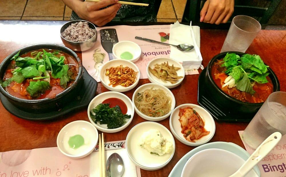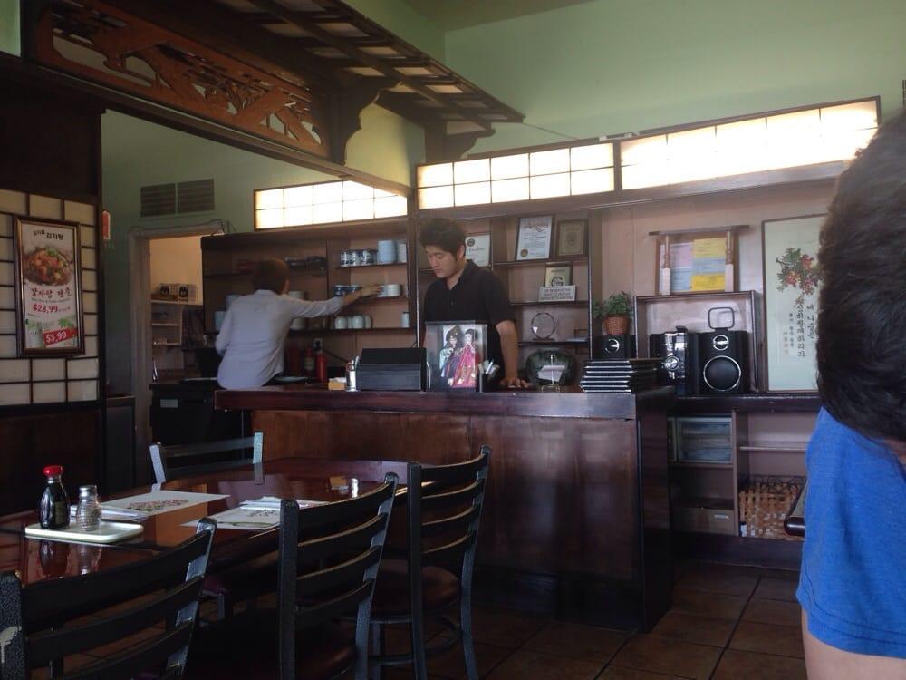 The food here is very good! Get the smaller soups unless you have a party of 4 because it is a lot of food. I often get the pork and potato stew along with a meat dish if I am starving. Stew is very good and not that spicy despite how red it looks. Food comes out fast and hot with many side dishes and red bean rice. Be sure to try their Korean Tea from the machine at the entrance (put a quarter in) it tastes like a sweet red/black bean different, but very tasty!